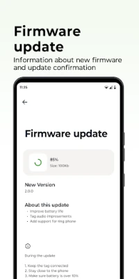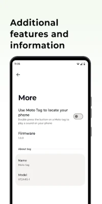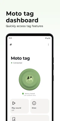 View tag name Check connection status Check battery status Check hardware information Check & update firmware Receive low battery alerts Ring to locate tag Allows tag button press actions e.g ring phone Allows remote camera button interaction (requires Accessibility permissions)